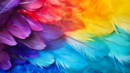 Resplendent Rainbow feathers colorful. Fashion macro. Generate Ai