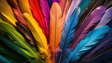 close-up of colorful feathers arrangement, created with generative ai