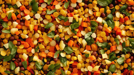 A vibrant lentil salad featuring a mix of fresh chopped vegetables. Perfect for a healthy diet, this colorful dish showcases a variety of textures and flavors.