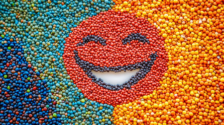 Colorful lentils arranged in a smiling face design promoting happiness and healthy eating