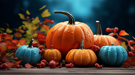 Capture the essence of autumn's vibrant hues with this captivating image It showcases a rustic backdrop adorned with an array of colorful pumpkins, golden leaves, and earthy pinecones Perfect for inspiring seasonal creativity, this image evokes the cozy ambiance of fall and provides endless decor ideas for your home AI Generative