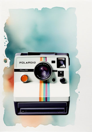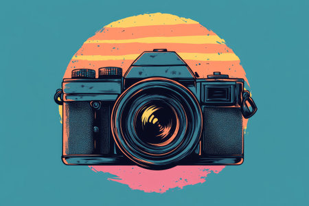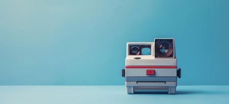 Vintage analog camera with clean lines and retro color palette, symbolizing the nostalgia, snapshots from the 80s