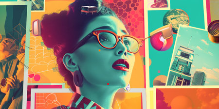 Creative scrapbook collage featuring abstract shapes in vibrant colors and textures
