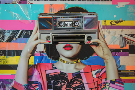 A retro cassette tape collage with vibrant, nostalgic colors.