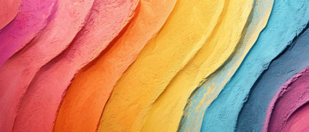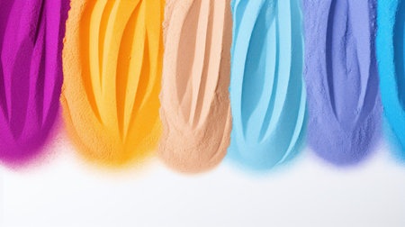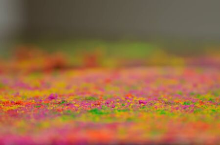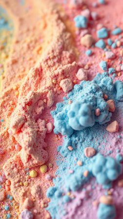 Bright pastel colored powders create a visually stunning abstract background in a vibrant arrangement of textures