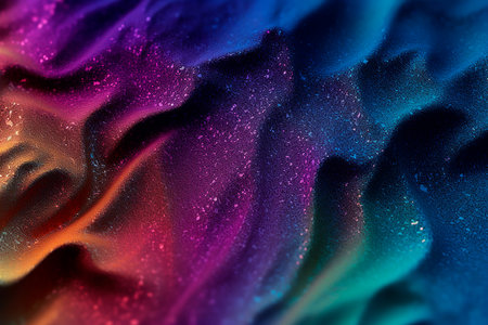 Colorful sand waves featuring vibrant hues like pink, blue, and orange create an abstract pattern. fine glitter accents add a touch of sparkle, making it ideal for creative projects, backgrounds, or artistic inspirations. Generative AI