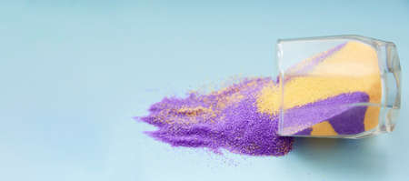 Abstract creative colorful sand flows. Creative occupation. Copy space. Extra wide banner.