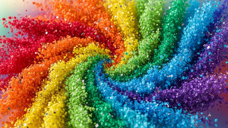 A mesmerizing close-up of vibrant glitter colors blending seamlessly, creating a colorful abstract background that exudes joy and creativity.