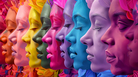 Colorful close-up of expressive eyes showcasing varied hues and emotions in a creative art setting