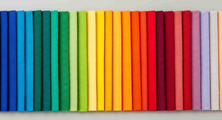 Stack of color example cards, pallette on blue background. Image with copy blank space.