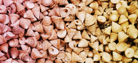 Closeup of colorful sea shells in different shapes
