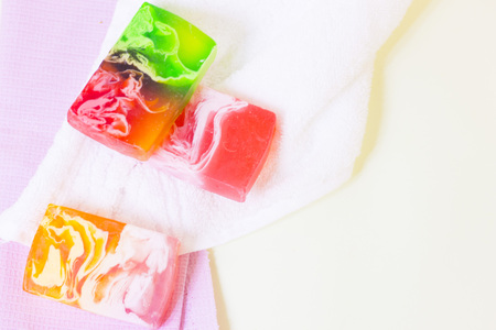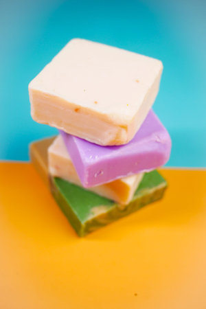Colourfull soap bars arrranged at the background