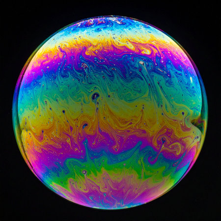 Beautiful psychedelic abstraction formed by light on the surface of a soap bubble.
