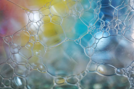 Foam bubble from soap or shampoo washing rainbow abstract, macro