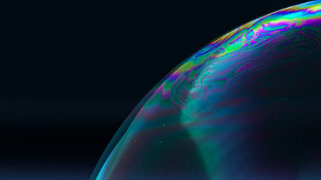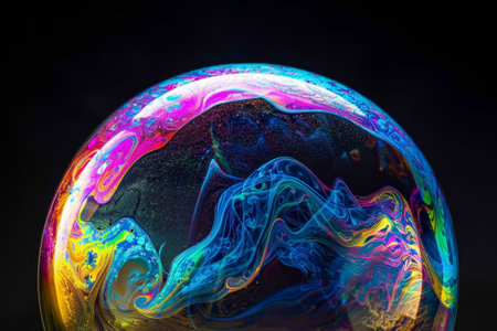 Multicolor psychedelic alien planet with an atmosphere in the darkness of the universe. Soap bobble close-up