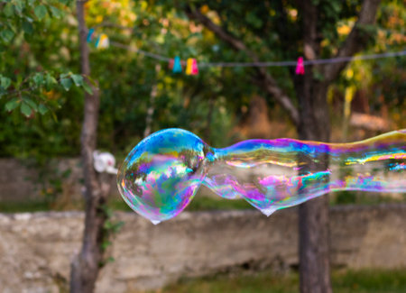 Soap bubbles in yard, colorful bubbles
