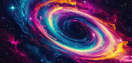 Stunning depiction of a swirling nebula in deep space, showcasing vibrant colors and a rich starry background. Perfect for cosmic or astronomical themes.