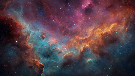 Cosmic nebula with vibrant colors and glowing stars, creating a stunning space vista.