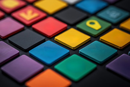 Vibrant grid of colorful app icons showcasing modern software features against a sleek background. Highlighting intricate details, this image depicts technology and communication