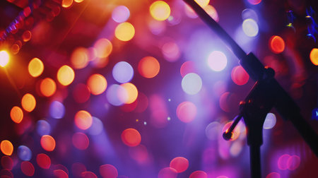 Defocused entertainment concert lighting on stage. Entertainment, concert, club, party invitation background.