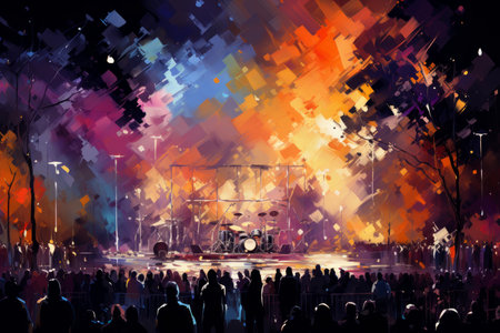 Taking photos of the concert stage, live concert, and music festival due to mobile phone