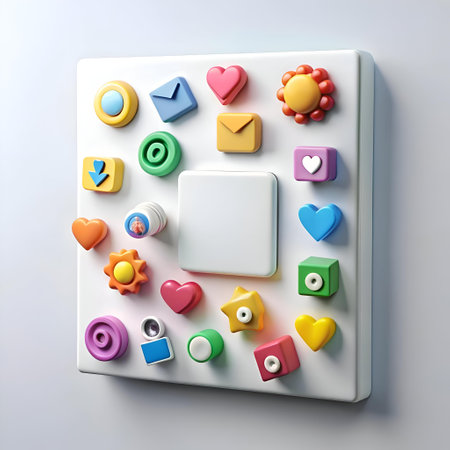 A collection of colorful toggle switches with icons representing light bulbs and gears, arranged on a white background.