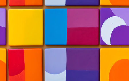 A vivid array of colorful geometric tiles showcases a harmonious blend of hues, perfect for creative projects, backgrounds, or art displays.