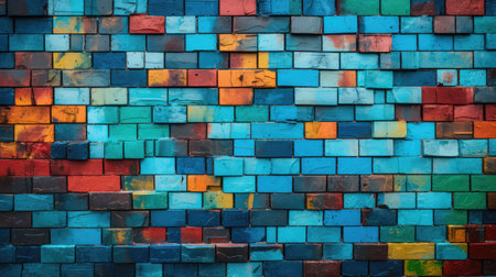 bold color blocks form a pattern that repeats on a wall, created with generative ai