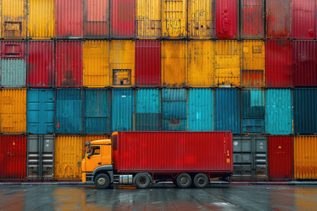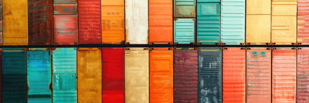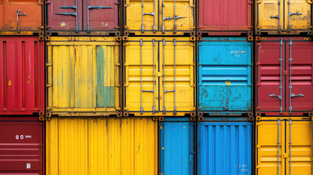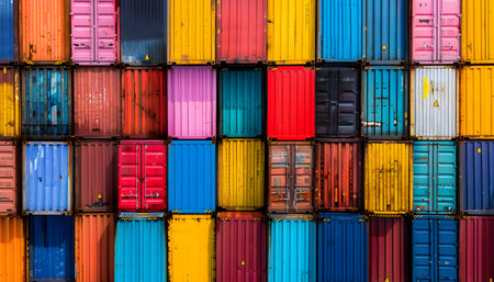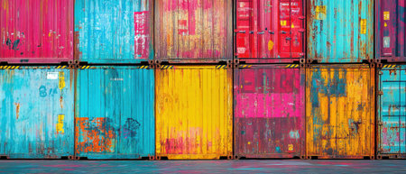 close-up of stacked shipping containers in vibrant colors, created with generative ai