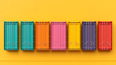 Vivid rows of colorful shipping containers neatly organized in a vibrant storage yard