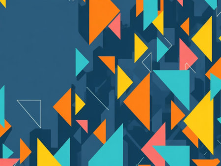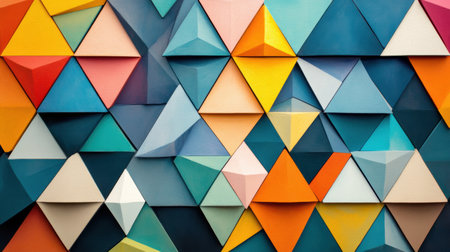 A dynamic arrangement of triangular shapes showcases a blend of colors, creating an engaging and visually appealing mosaic effect.