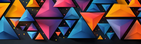 Colorful triangles and geometric patterns on a dark background, Generative AI