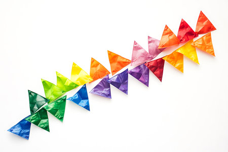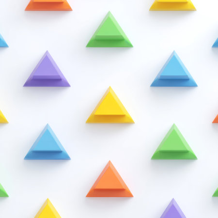This image features a vibrant pattern of colorful triangle shapes arranged on a clean white background, ideal for creative designs and artistic projects.