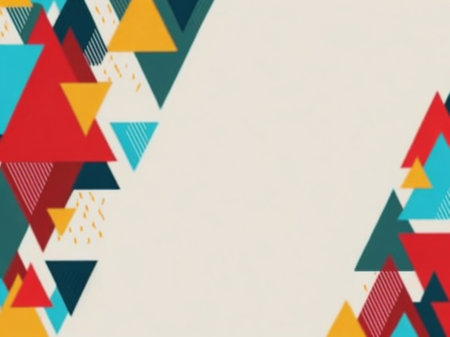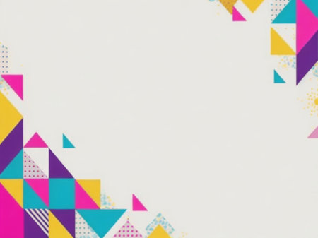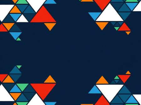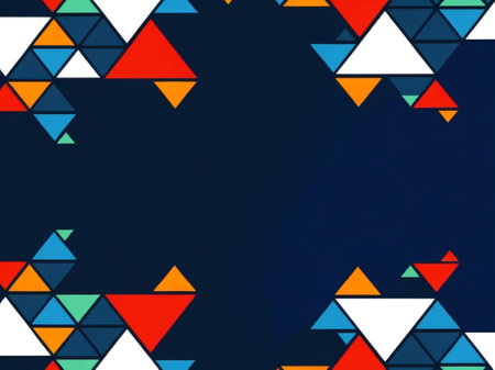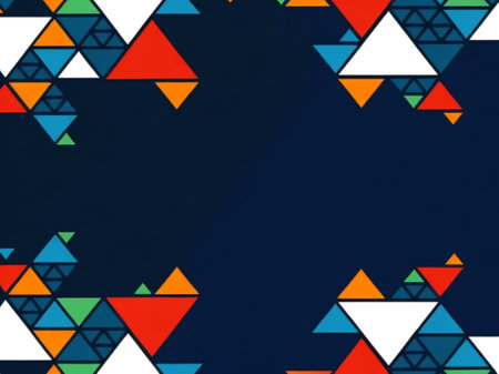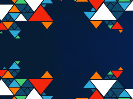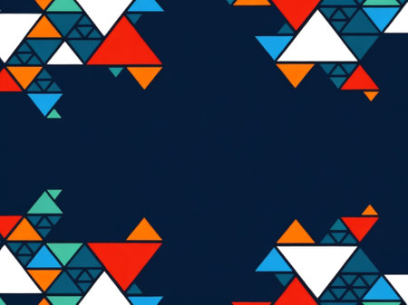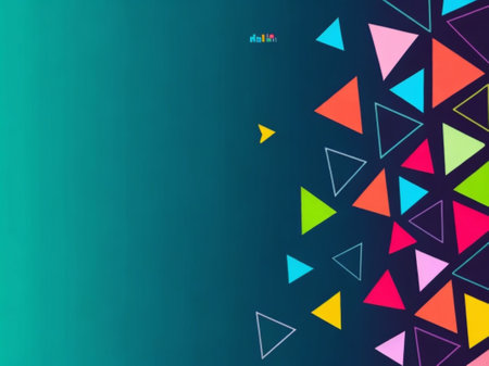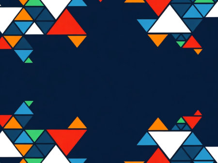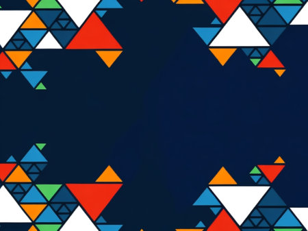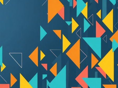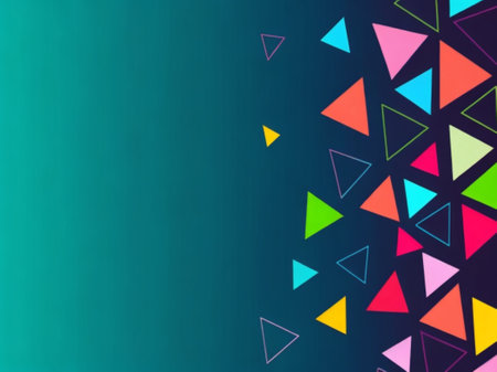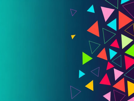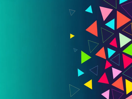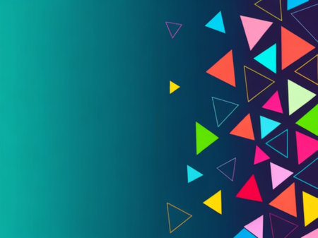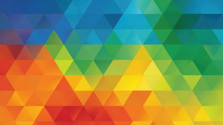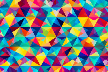 Abstract geometric background with bright, colorful triangles.