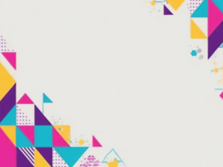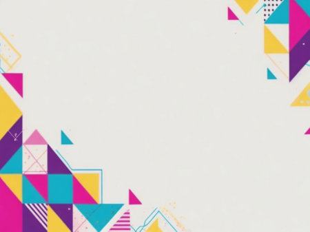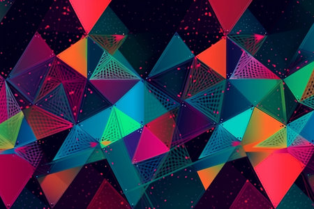 A dynamic mosaic of colorful, glowing triangles creates a vibrant and modern abstract background.