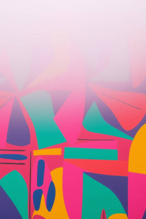 This dynamic abstract background features an array of vibrant geometric shapes in bold colors, perfect for creative design projects and artistic inspiration.