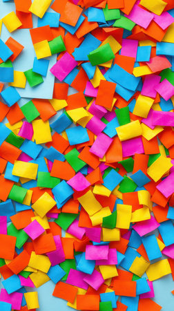 A bright and colorful confetti spread across a surface brings life to any celebration, inviting joy and happiness. Perfect for vibrant event decorations and festive themes.