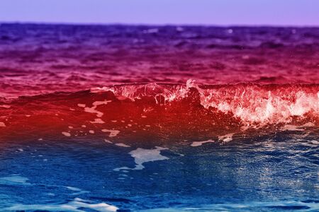 Real photo sea water waves, abstract background, nature power, pale light purple red orange matte more tone in stock
