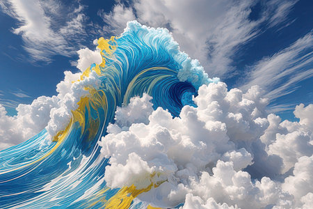 Vibrant abstract wave art in blue and orange tones. concept of ocean energy, dynamic movement, creative expression. Abstract background.