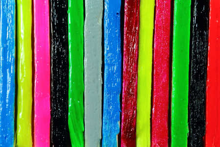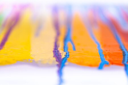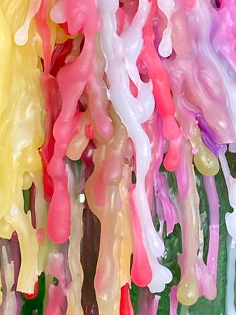 Abstract multicolored background of streaks of wax candles. Stripes of different colors. close-up. selective focus.