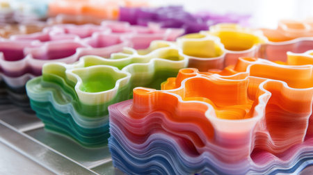 This vibrant image showcases a colorful assortment of layered soap molds in a range of shapes and hues, ideal for craft enthusiasts and DIY projects.