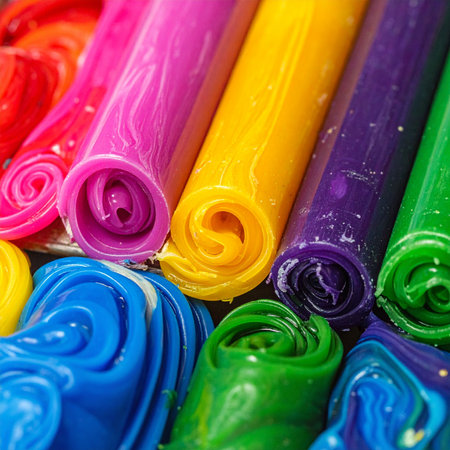 A vibrant close-up of thick paint strokes in various colors, showcasing a rich texture and perfect for inspiring creativity in artistic projects or design.