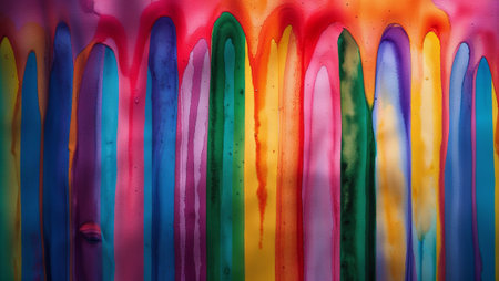 Colorful paint drips down a canvas, forming a vibrant rainbow pattern, showcasing an abstract art piece. Ai generated image