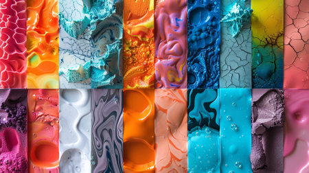Colorful arrangement of various colored paints in square containers. Generative AI.