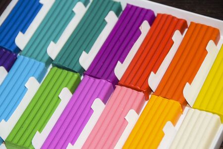 Multi-colored childrens plasticine on a pink background. Craft with kids. Art tools.