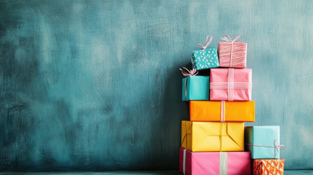 Celebrate every occasion with a vibrant stack of colorful gift boxes, ready to bring joy and excitement.