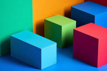 Vibrant arrangement of isometric 3D cubes showcasing bold colors and soft shadows