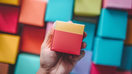A lively scene featuring assorted colorful paper boxes artistically scattered on a white surface, ideal for design projects, creative themes, and modern decor ideas.