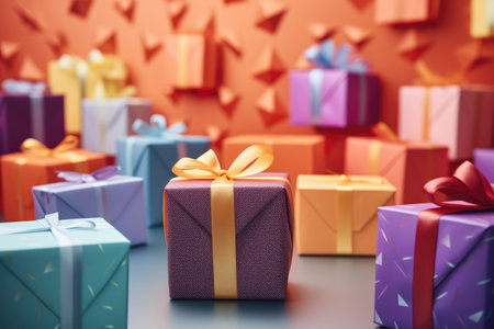 An AI generated image of festive gift boxes in various colors