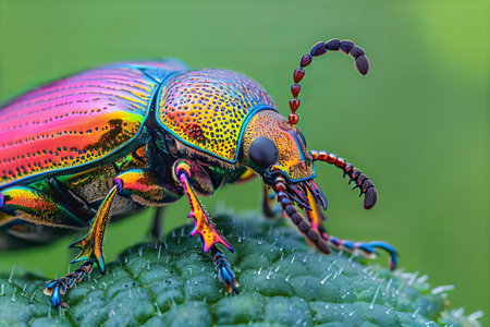 Strikingly colorful macro photography of a beetle with vivid iridescent hues